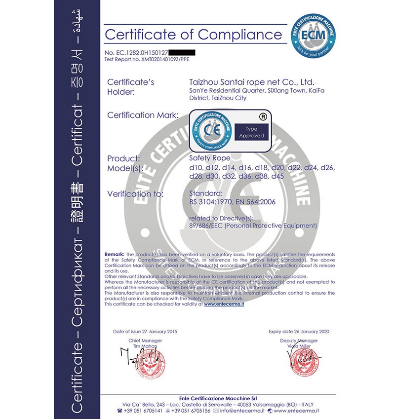 泰州市三泰健康科技有限公司(原 泰州市三泰繩網有限公司),本公司成立于1988年12月22日,至今近30年的生產歷程。多年來的生產經驗,加之我們不斷的創新,已經建設成為集研制、開發、生產、銷售為一體的龍頭企業。公司生產線由捻線車間、制繩車間、織網車間、織帶車間、織(絞)繩車間、安全網組裝車間、安全帶組裝車間、檢驗室等組成。企業現有職工155人,企業管理人員6名,市場研發人員8名,專業質檢人員2名,......